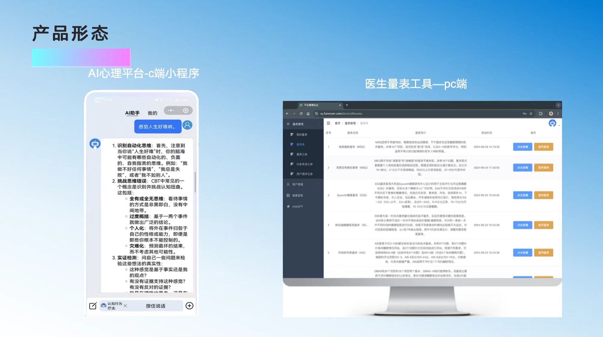 產品包括:toc:小云醫AI,tob:互聯網+設備調配系統。
